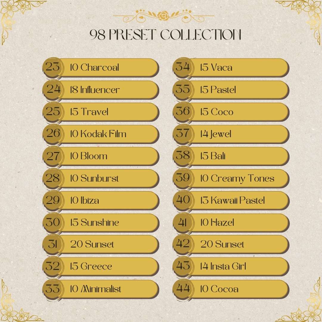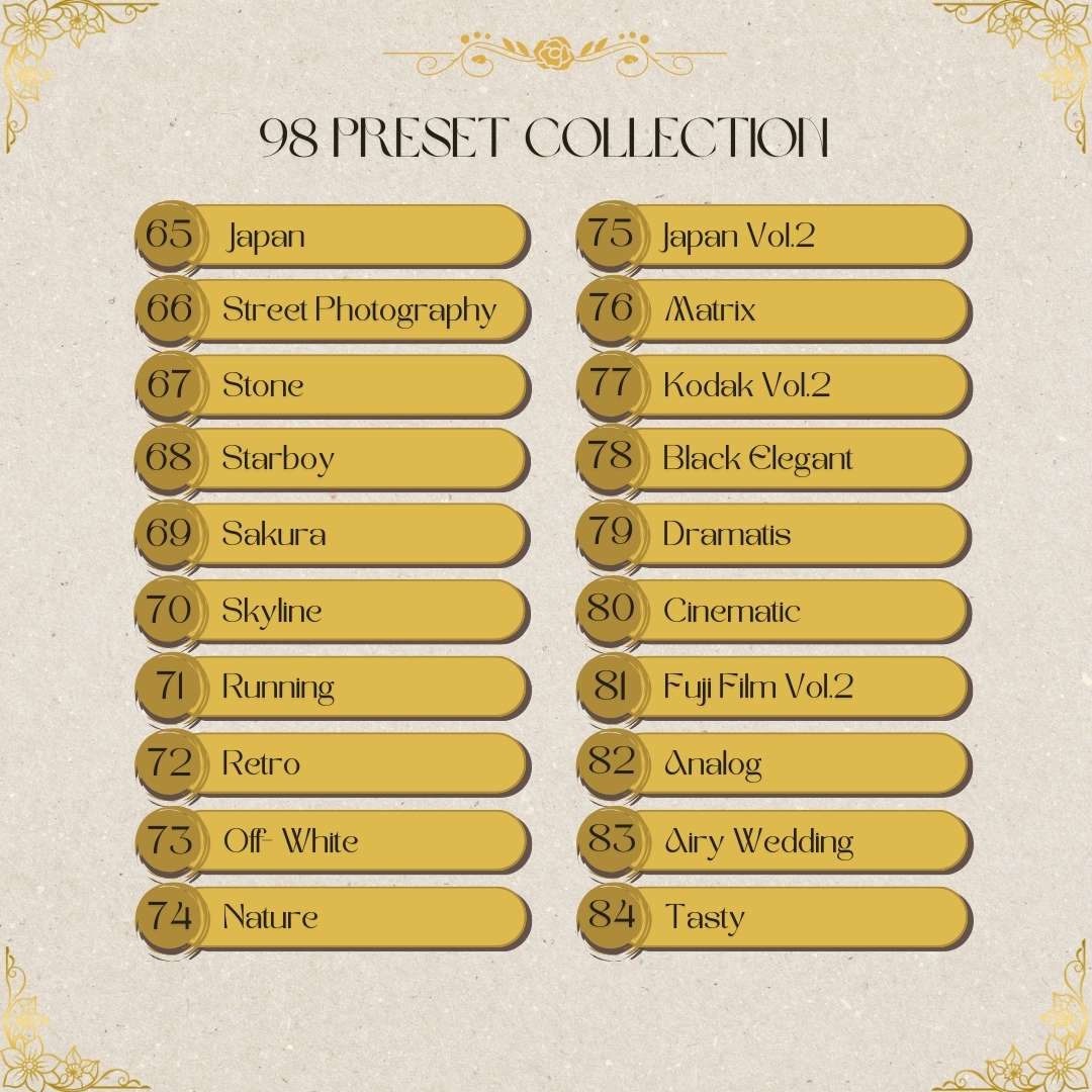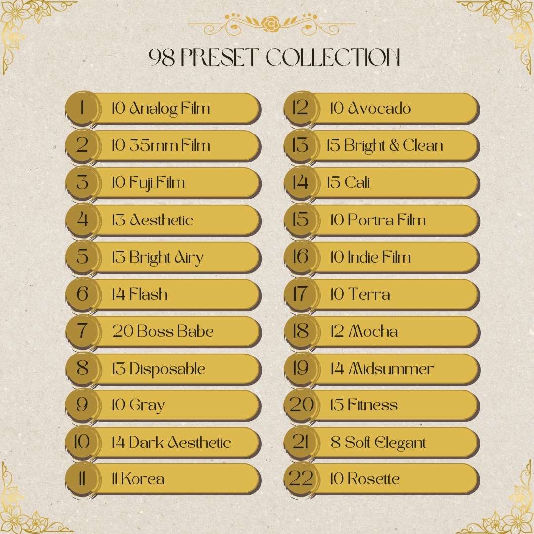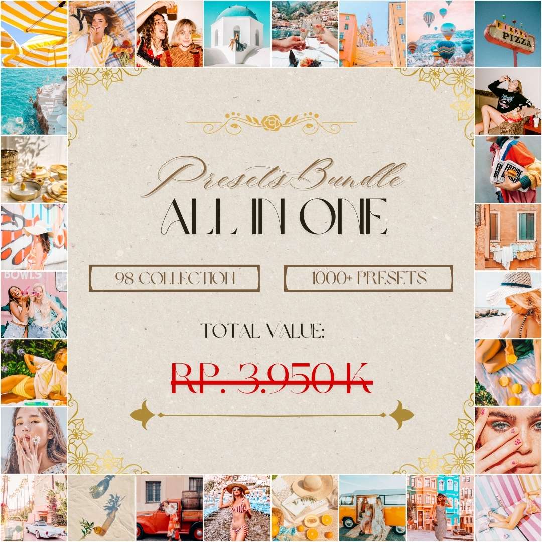 Presets adalah filter atau setting edit foto yang sudah jadi, tinggal pakai 1 klik aja langsung bikin foto kamu aesthetic tanpa ribet edit manual di Lightroom.