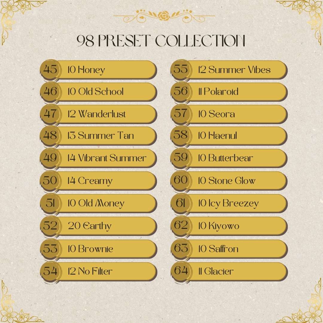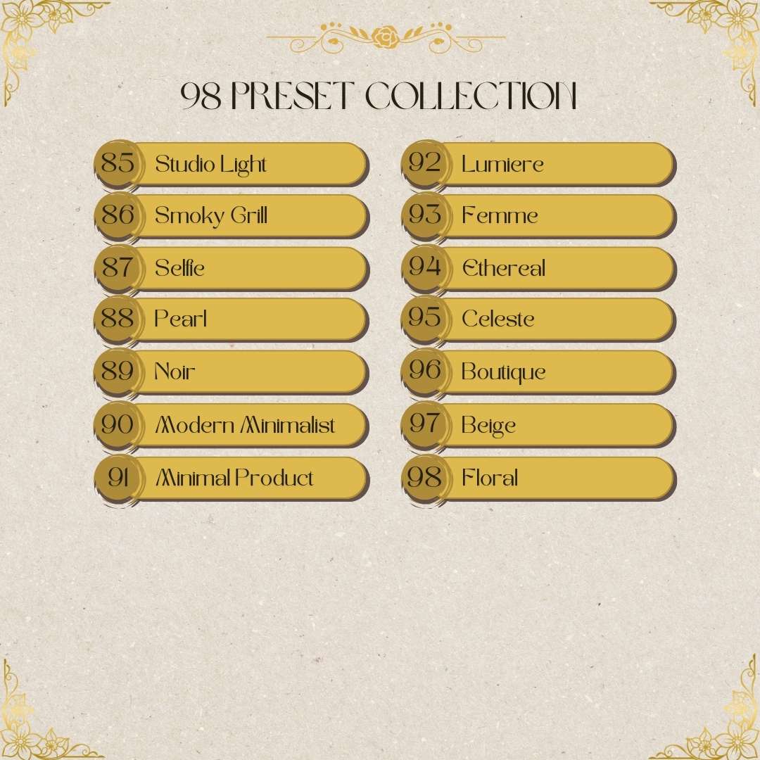 Access your presets immediately after purchase.