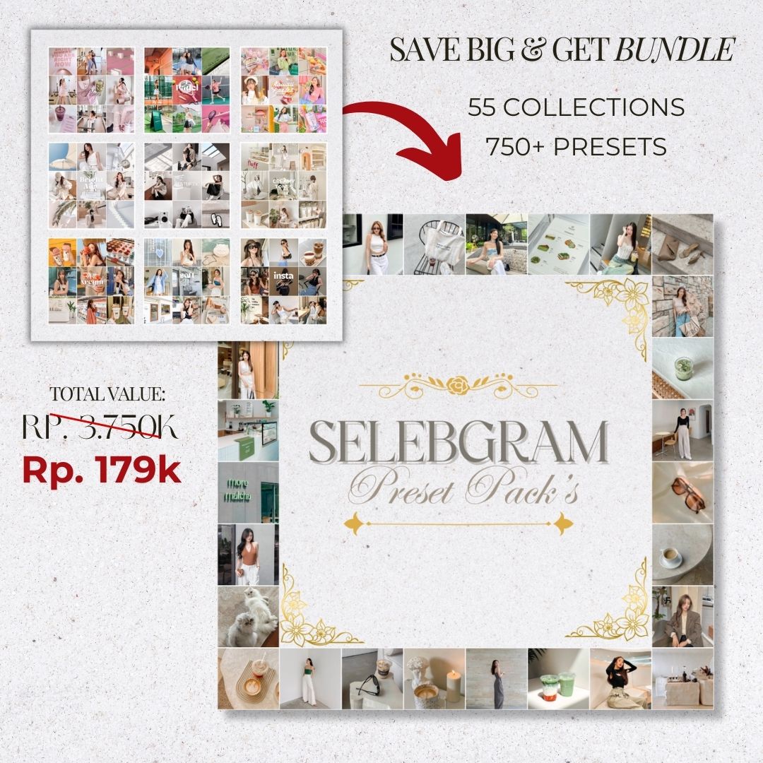 Presets adalah filter atau setting edit foto yang sudah jadi, tinggal pakai 1 klik aja langsung bikin foto kamu aesthetic tanpa ribet edit manual di Lightroom.